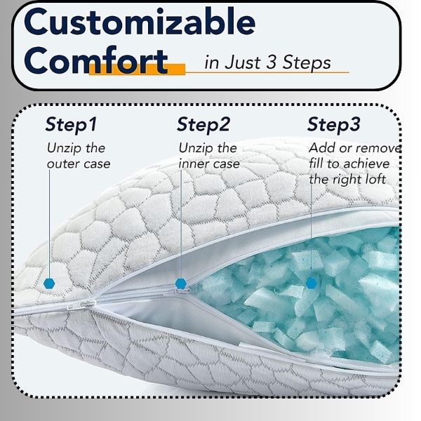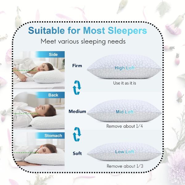 - Adjustable Loft and Firmness - Too hard, too firm, too soft, no support? QUTOOL adjustable pillow provides hotel-quality softness, and offers firm support. The hotel pillows feature a zippered inner and outer cover, you can ADD or REMOVE foam filling to suit your size, shape or sleep position, find the right comfort level and provide you with the ultimate sleeping experience. Suitable for side sleepers, back sleepers and stomach sleepers. Ideal as Christmas gift for loves.