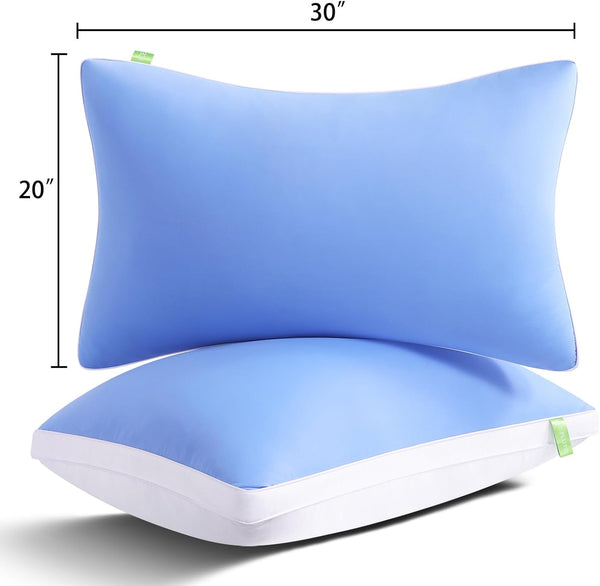 Cooling Bed Pillows Queen Size Set of 2, Cool for Hot Sleepers, Soft Gusseted Hotel Down Alternative Pillow 2 Pack for Side Back Stomach Sleeper, Supportive, Pain Relief,